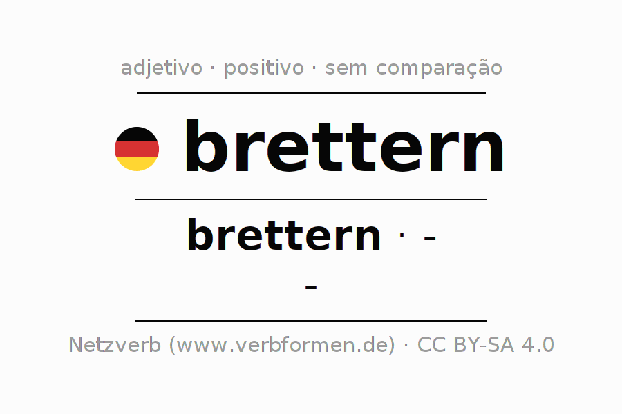A declinação do adjetivo brettern não forma o grau de comparação brettern. O adjectivo não tem forma no comparativo e nem no superlativo. O adjectivo brettern pode ser utilizado tanto como atributivo antes de um substantivo ou como predicativo junto com um verbo.Não se pode flexionar e comparar somente o adjetivo brettern, mas sim todos os adjetivos em alemão. Comentários ☆
