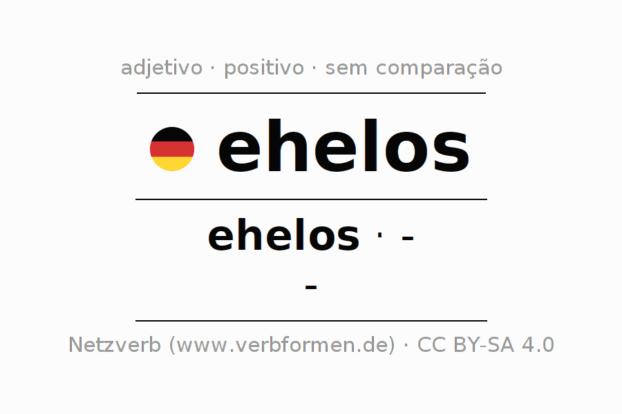A declinação do adjetivo ehelos não forma o grau de comparação ehelos. O adjectivo não tem forma no comparativo e nem no superlativo. O adjectivo ehelos pode ser utilizado tanto como atributivo antes de um substantivo ou como predicativo junto com um verbo.Não se pode flexionar e comparar somente o adjetivo ehelos, mas sim todos os adjetivos em alemão. Comentários ☆