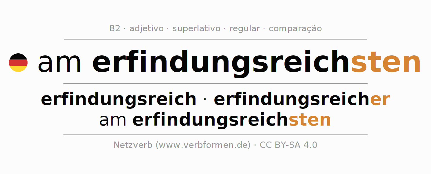 - Feminino: die erfindungsreichste, der erfindungsreichsten, der erfindungsreichsten, die erfindungsreichste