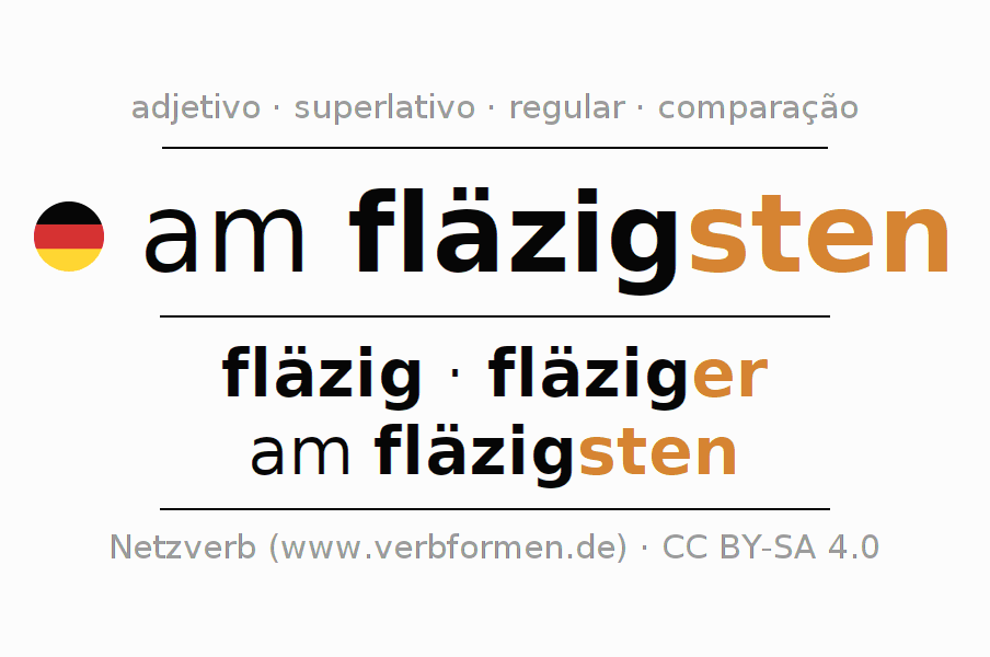 Resumo de todas as formas de declinação e formas de comparação do adjetivo am fläzigsten em todos os géneros e casos
