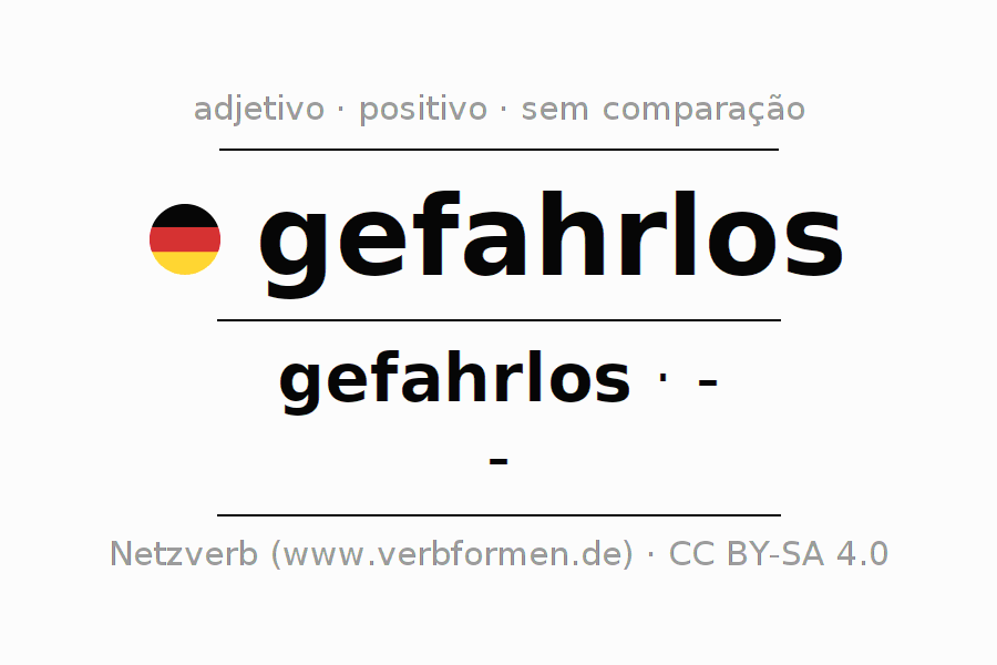 A declinação do adjetivo gefahrlos não forma o grau de comparação gefahrlos. O adjectivo não tem forma no comparativo e nem no superlativo. O adjectivo gefahrlos pode ser utilizado tanto como atributivo antes de um substantivo ou como predicativo junto com um verbo.Não se pode flexionar e comparar somente o adjetivo gefahrlos, mas sim todos os adjetivos em alemão. Comentários ☆