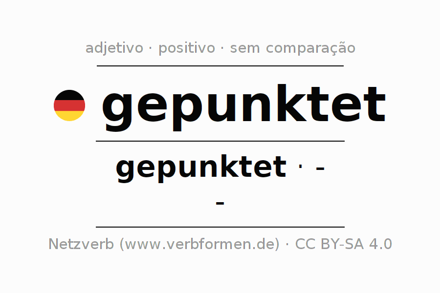 A declinação do adjetivo gepunktet não forma o grau de comparação gepunktet. O adjectivo não tem forma no comparativo e nem no superlativo. O adjectivo gepunktet pode ser utilizado tanto como atributivo antes de um substantivo ou como predicativo junto com um verbo.Não se pode flexionar e comparar somente o adjetivo gepunktet, mas sim todos os adjetivos em alemão. Comentários ☆