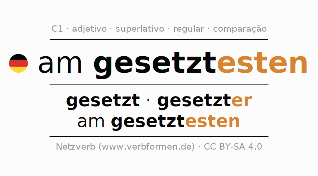 - Masculino: ein gesetztester, eines gesetztesten, einem gesetztesten, einen gesetztesten