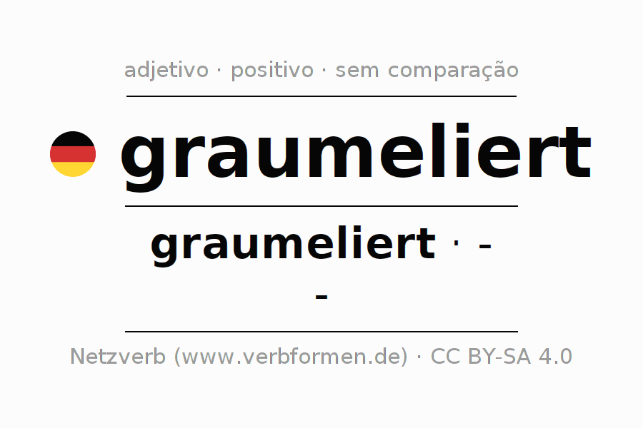 A declinação do adjetivo graumeliert não forma o grau de comparação graumeliert. O adjectivo não tem forma no comparativo e nem no superlativo. O adjectivo graumeliert pode ser utilizado tanto como atributivo antes de um substantivo ou como predicativo junto com um verbo.Não se pode flexionar e comparar somente o adjetivo graumeliert, mas sim todos os adjetivos em alemão. Comentários ☆