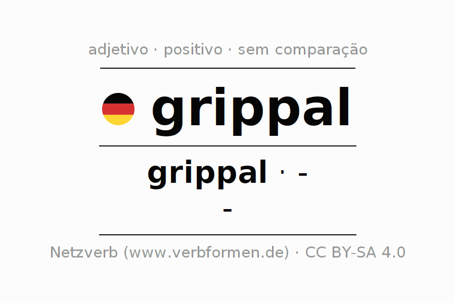 A declinação do adjetivo grippal não forma o grau de comparação grippal. O adjectivo não tem forma no comparativo e nem no superlativo. O adjectivo grippal pode ser utilizado tanto como atributivo antes de um substantivo ou como predicativo junto com um verbo.Não se pode flexionar e comparar somente o adjetivo grippal, mas sim todos os adjetivos em alemão. Comentários ☆