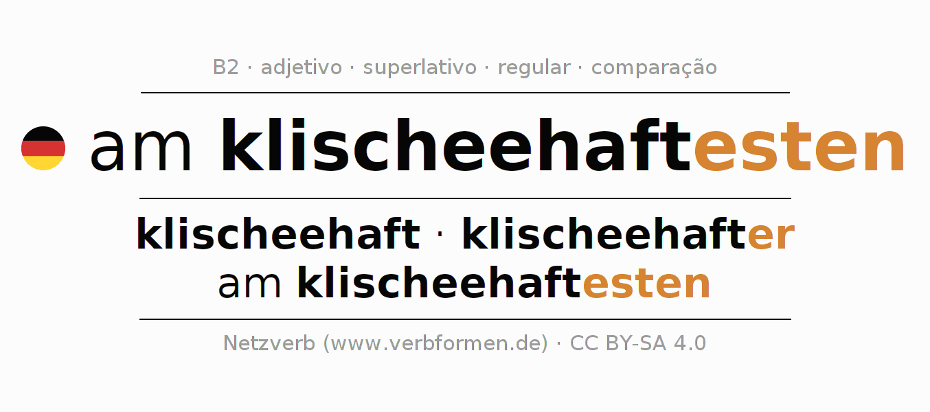 - Masculino: der klischeehafteste, des klischeehaftesten, dem klischeehaftesten, den klischeehaftesten