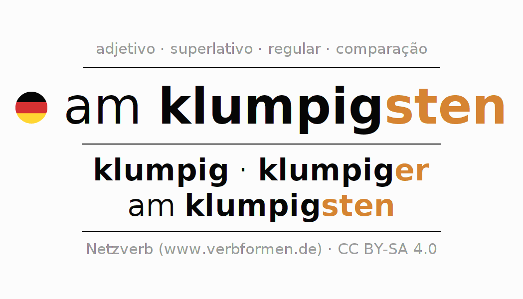 - Masculino: der klumpigste, des klumpigsten, dem klumpigsten, den klumpigsten