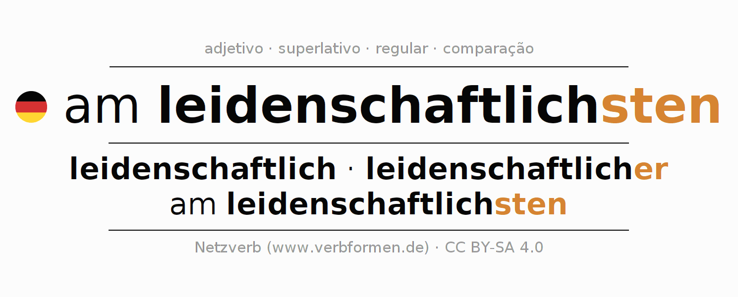 - Masculino: leidenschaftlichster, leidenschaftlichsten, leidenschaftlichstem, leidenschaftlichsten