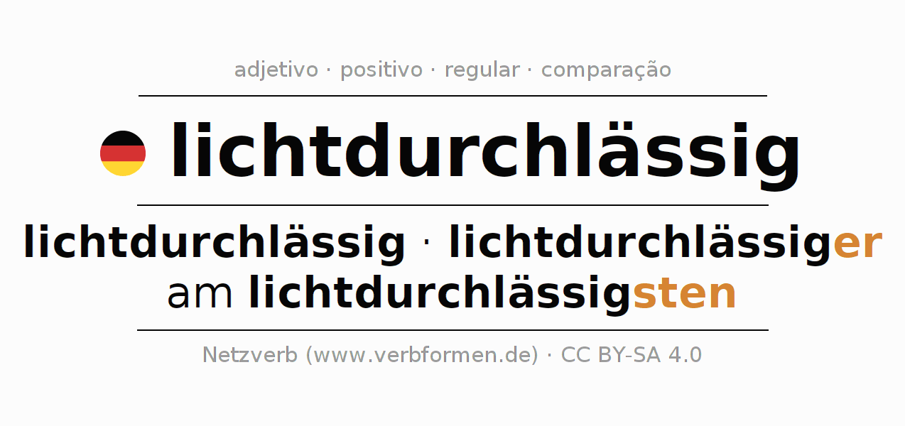 Resumo de todas as formas de declinação e formas de comparação do adjetivo lichtdurchlässig em todos os géneros e casos