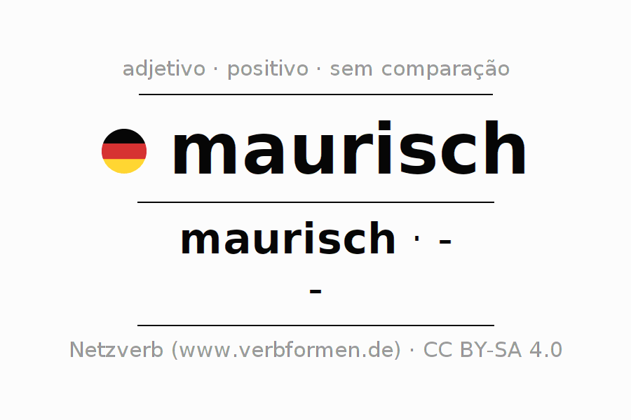 A declinação do adjetivo maurisch não forma o grau de comparação maurisch. O adjectivo não tem forma no comparativo e nem no superlativo. O adjectivo maurisch pode ser utilizado tanto como atributivo antes de um substantivo ou como predicativo junto com um verbo.Não se pode flexionar e comparar somente o adjetivo maurisch, mas sim todos os adjetivos em alemão. Comentários ☆