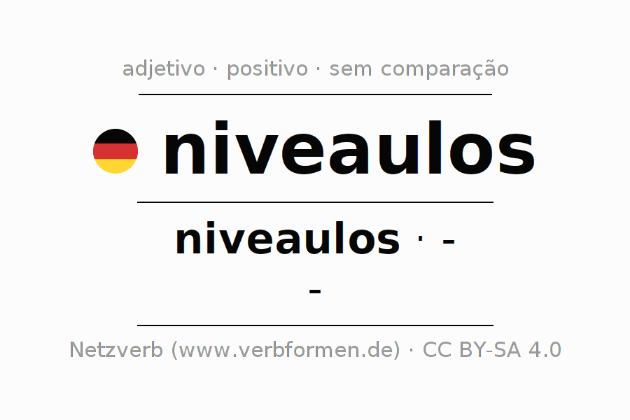 A declinação do adjetivo niveaulos não forma o grau de comparação niveaulos. O adjectivo não tem forma no comparativo e nem no superlativo. O adjectivo niveaulos pode ser utilizado tanto como atributivo antes de um substantivo ou como predicativo junto com um verbo.Não se pode flexionar e comparar somente o adjetivo niveaulos, mas sim todos os adjetivos em alemão. Comentários ☆