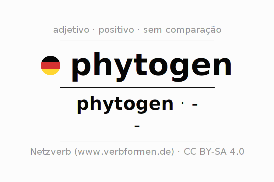 A declinação do adjetivo phytogen não forma o grau de comparação phytogen. O adjectivo não tem forma no comparativo e nem no superlativo. O adjectivo phytogen pode ser utilizado tanto como atributivo antes de um substantivo ou como predicativo junto com um verbo.Não se pode flexionar e comparar somente o adjetivo phytogen, mas sim todos os adjetivos em alemão. Comentários ☆