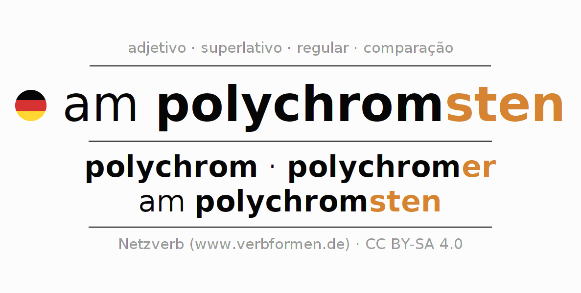- Feminino: die polychromste, der polychromsten, der polychromsten, die polychromste