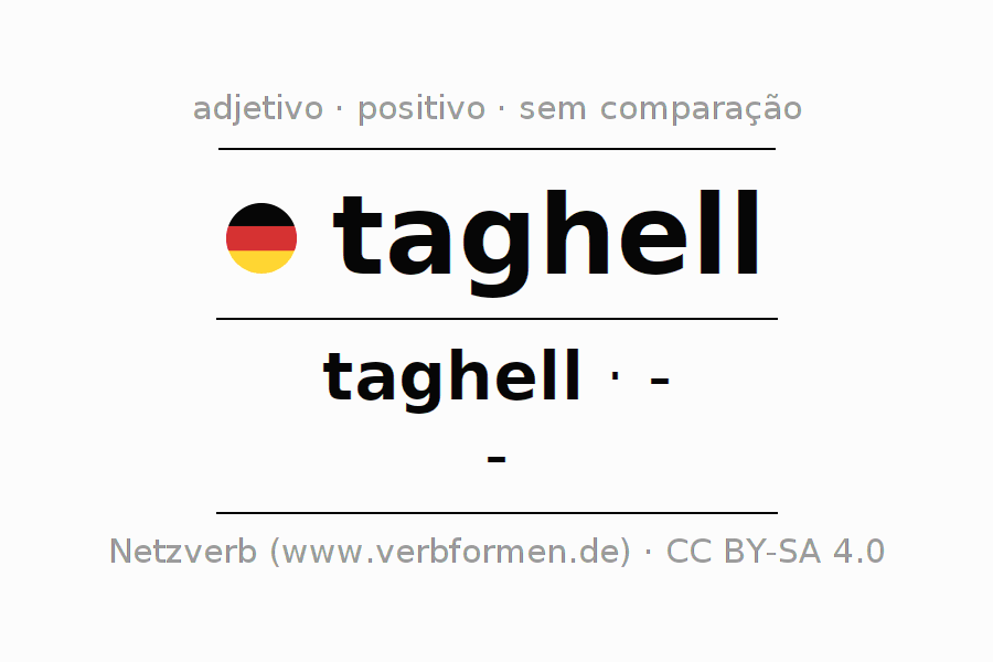 A declinação do adjetivo taghell não forma o grau de comparação taghell. O adjectivo não tem forma no comparativo e nem no superlativo. O adjectivo taghell pode ser utilizado tanto como atributivo antes de um substantivo ou como predicativo junto com um verbo.Não se pode flexionar e comparar somente o adjetivo taghell, mas sim todos os adjetivos em alemão. Comentários ☆