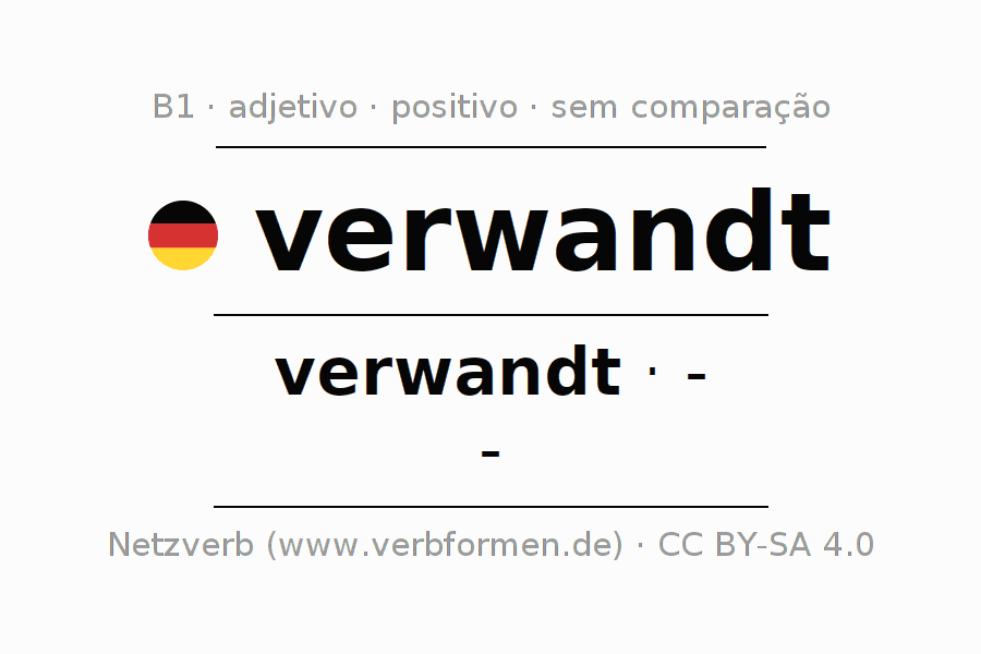 A declinação do adjetivo verwandt não forma o grau de comparação verwandt. O adjectivo não tem forma no comparativo e nem no superlativo. O adjectivo verwandt pode ser utilizado tanto como atributivo antes de um substantivo ou como predicativo junto com um verbo.Não se pode flexionar e comparar somente o adjetivo verwandt, mas sim todos os adjetivos em alemão. Comentários ☆