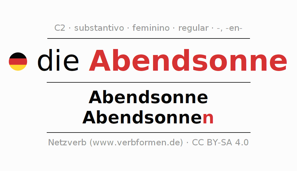 - Singular: die Abendsonne, der Abendsonne, der Abendsonne, die Abendsonne