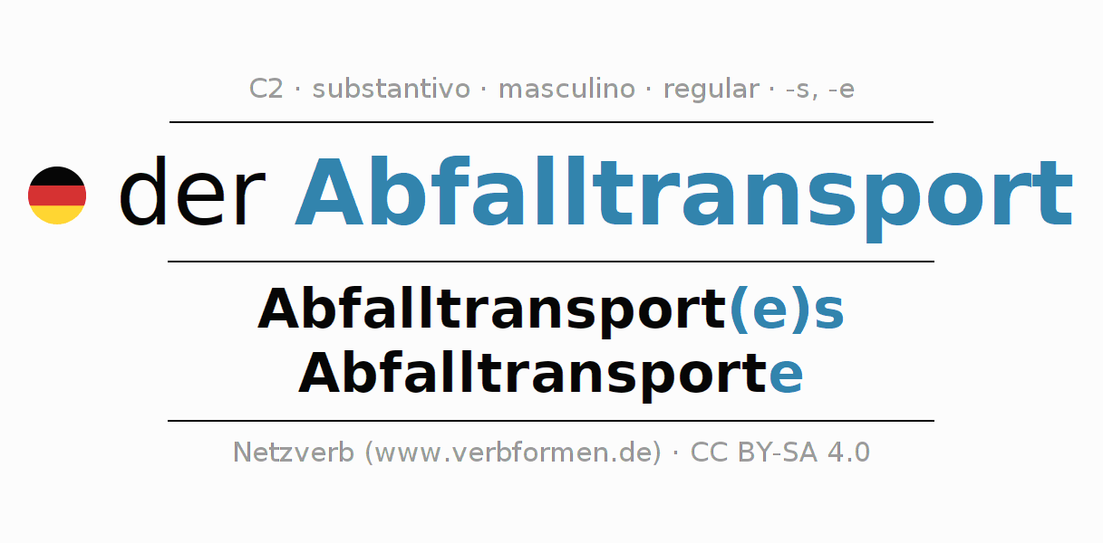 - Plural: die Abfalltransporte, der Abfalltransporte, den Abfalltransporten, die Abfalltransporte