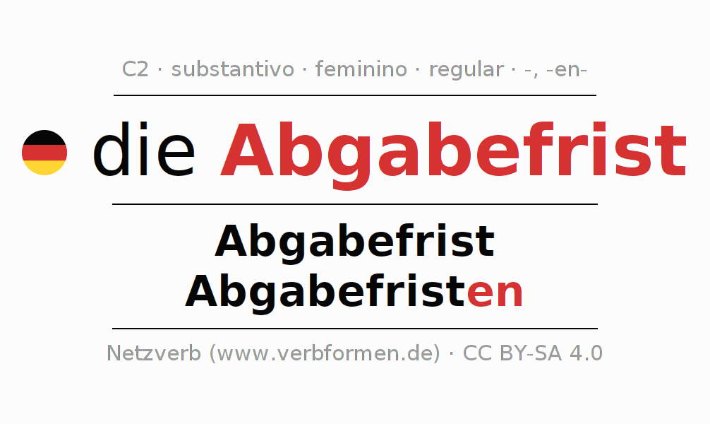 - Plural: die Abgabefristen, der Abgabefristen, den Abgabefristen, die Abgabefristen