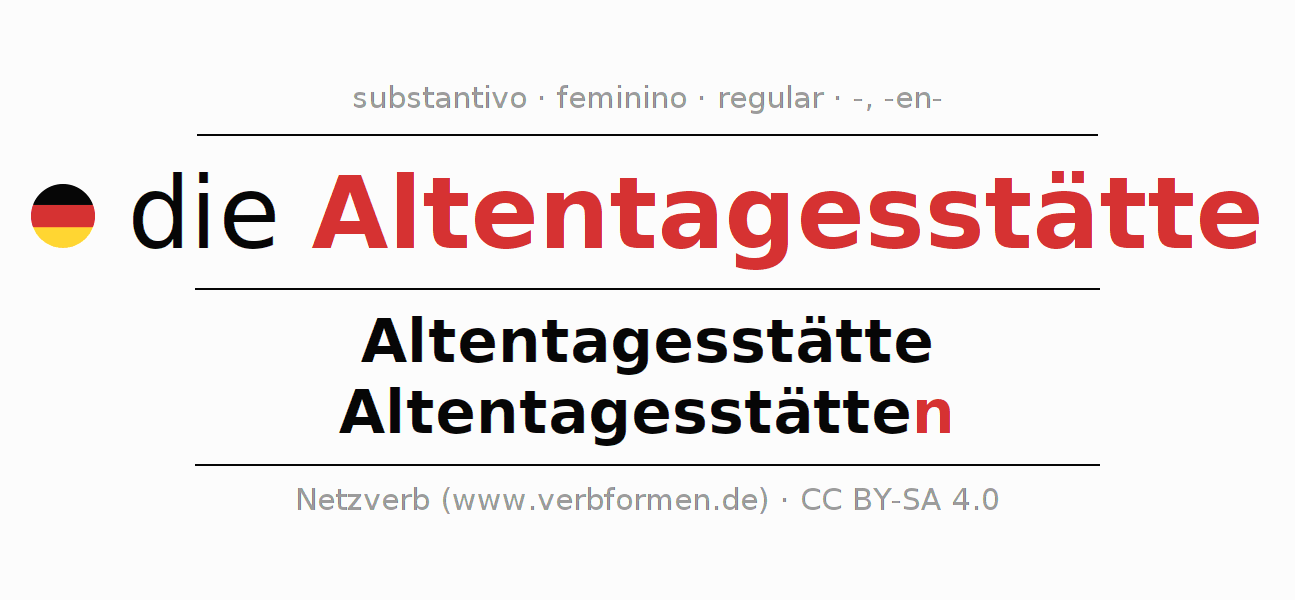 - Singular: die Altentagesstätte, der Altentagesstätte, der Altentagesstätte, die Altentagesstätte