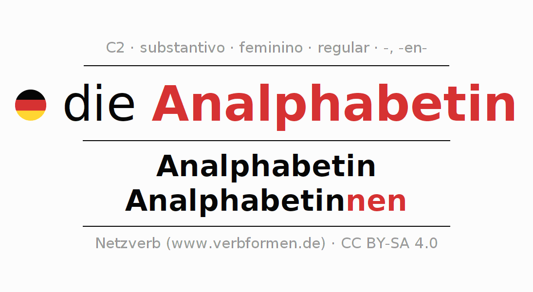 - Singular: die Analphabetin, der Analphabetin, der Analphabetin, die Analphabetin