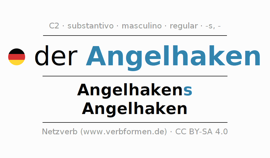- Plural: die Angelhaken, der Angelhaken, den Angelhaken, die Angelhaken