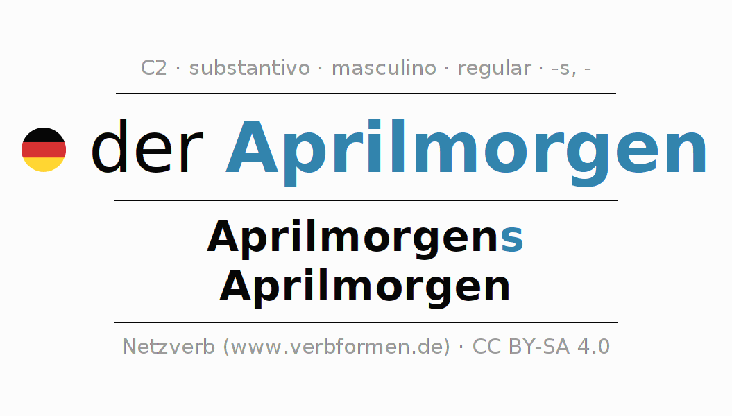 - Singular: der Aprilmorgen, des Aprilmorgens, dem Aprilmorgen, den Aprilmorgen