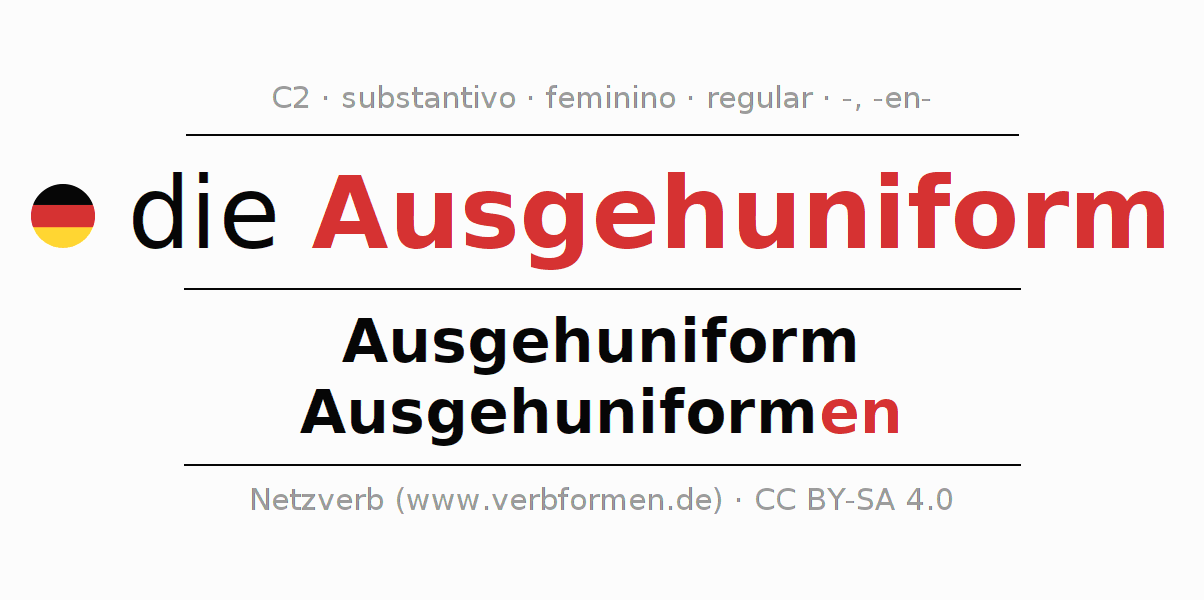 - Singular: die Ausgehuniform, der Ausgehuniform, der Ausgehuniform, die Ausgehuniform