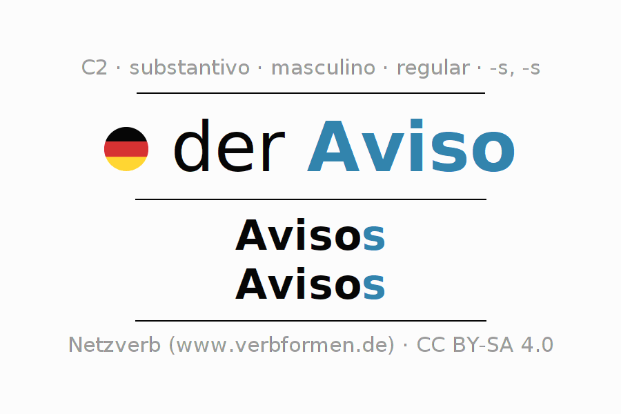 - Singular: der Aviso, des Avisos, dem Aviso, den Aviso