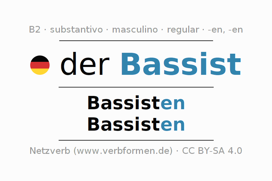 - Singular: der Bassist, des Bassisten, dem Bassisten, den Bassisten