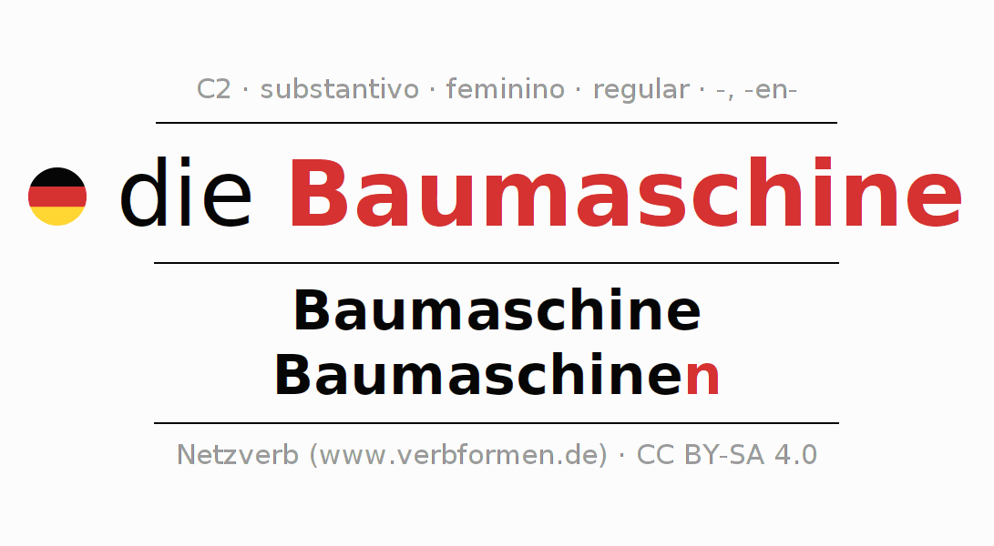 - Singular: die Baumaschine, der Baumaschine, der Baumaschine, die Baumaschine