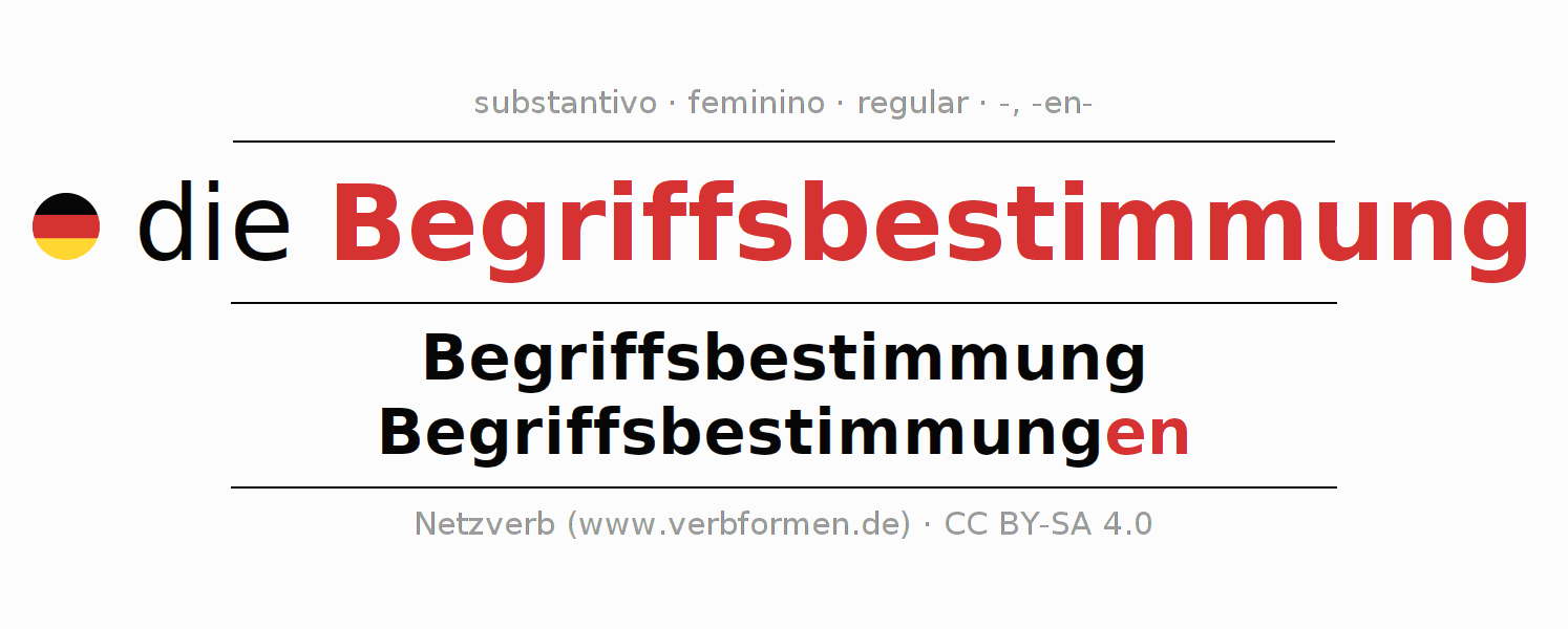- Singular: die Begriffsbestimmung, der Begriffsbestimmung, der Begriffsbestimmung, die Begriffsbestimmung