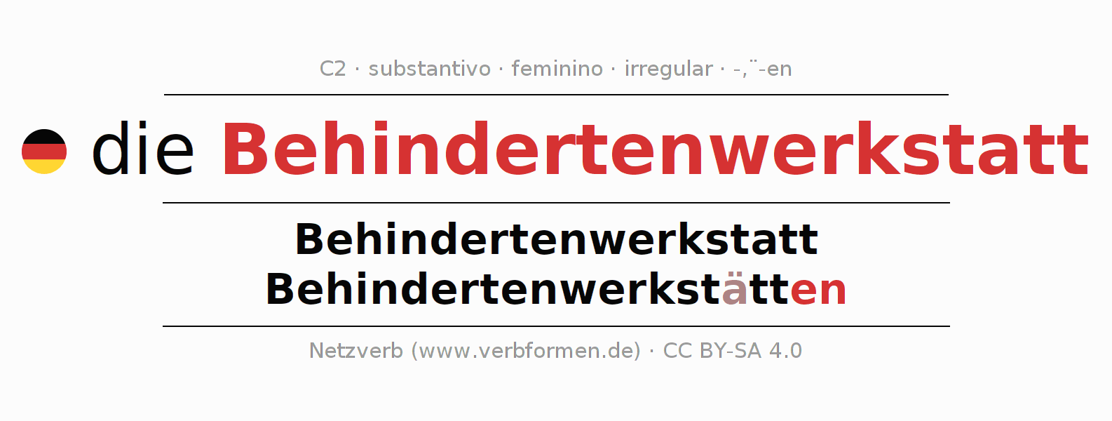 | Nom. | die Behindertenwerkstatt | die Behindertenwerkstätten |