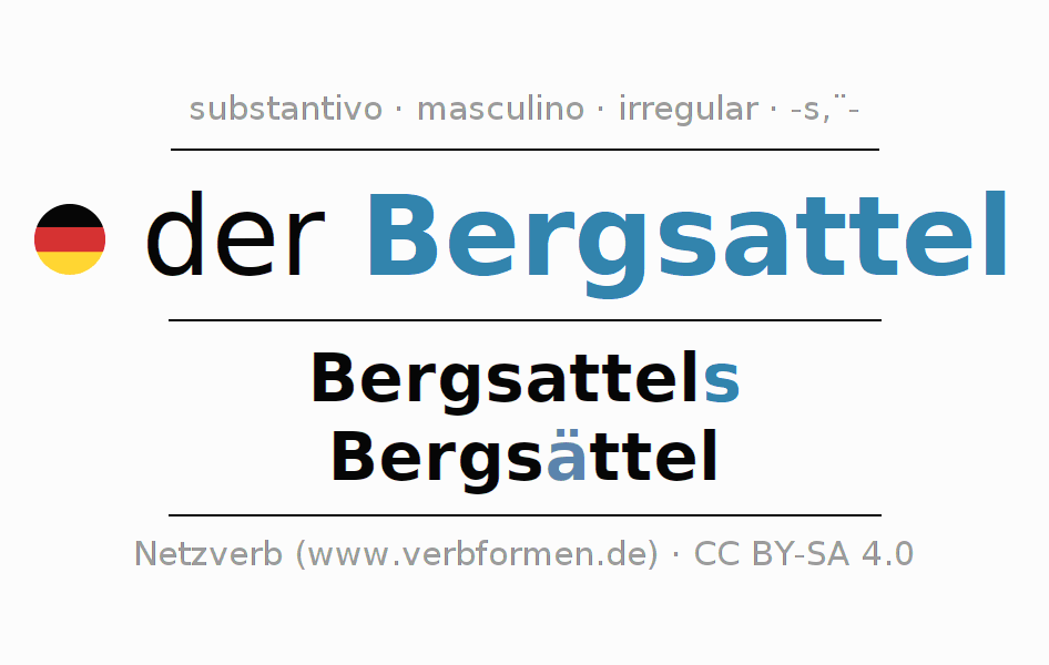 - Singular: der Bergsattel, des Bergsattels, dem Bergsattel, den Bergsattel