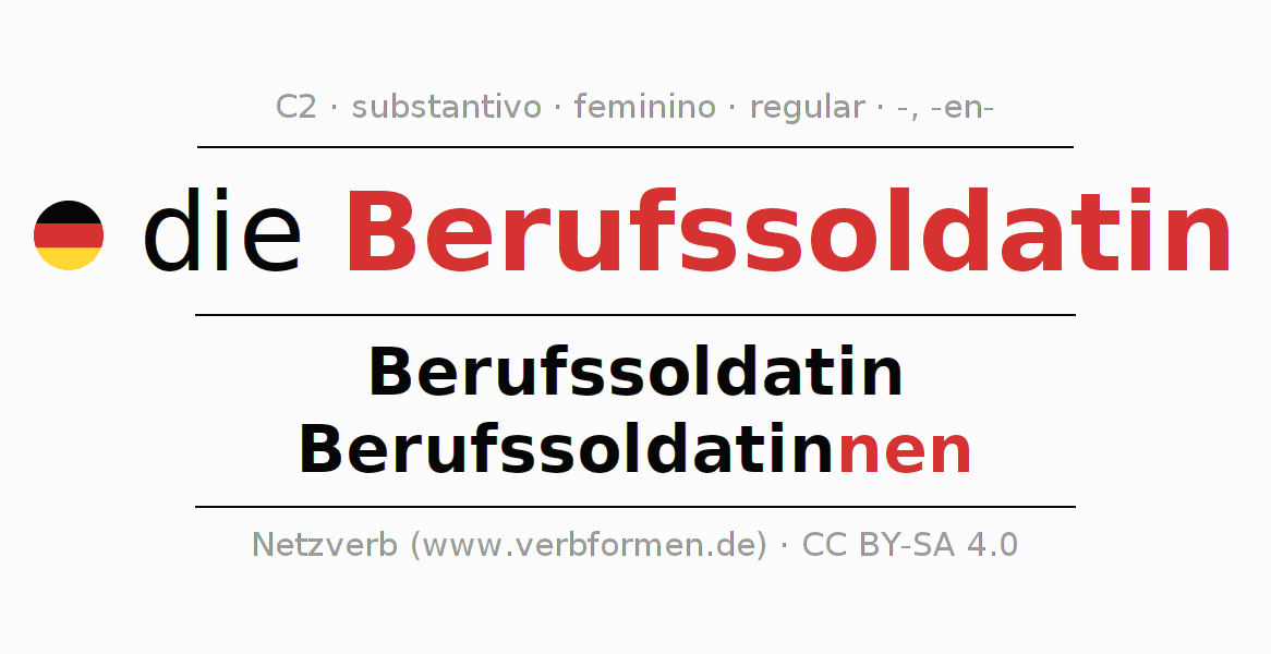 - Plural: die Berufssoldatinnen, der Berufssoldatinnen, den Berufssoldatinnen, die Berufssoldatinnen