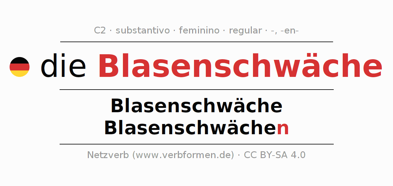 - Singular: die Blasenschwäche, der Blasenschwäche, der Blasenschwäche, die Blasenschwäche