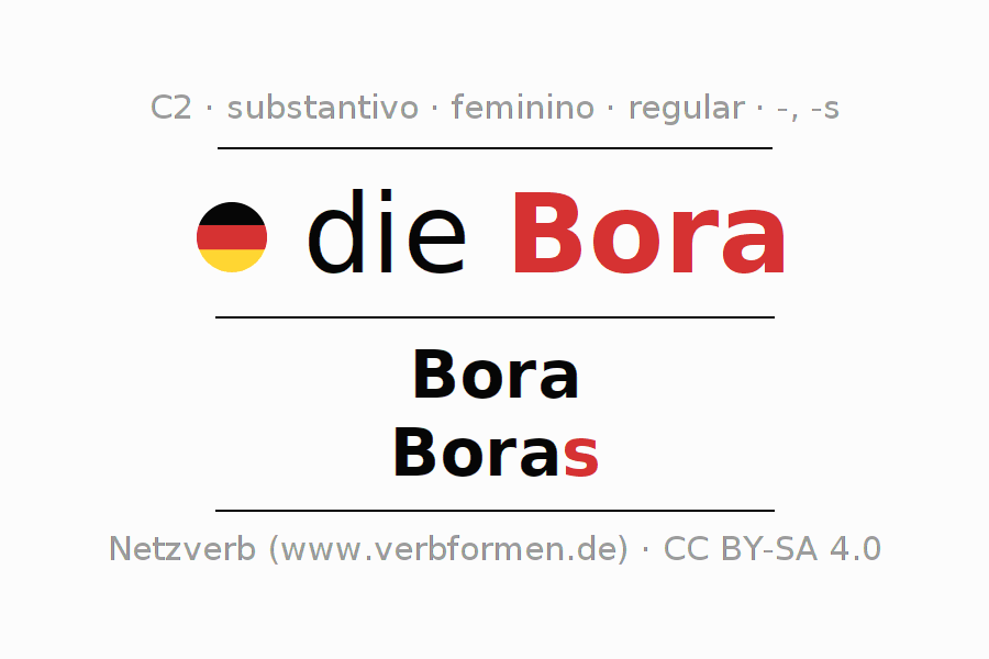 - Singular: die Bora, der Bora, der Bora, die Bora