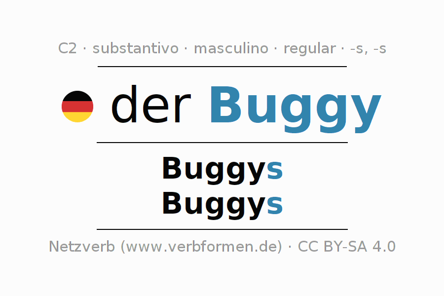 - Plural: die Buggys, der Buggys, den Buggys, die Buggys