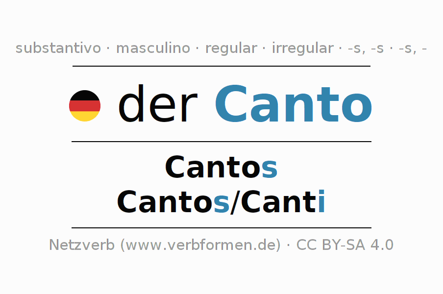 - Plural: die Cantos/Canti, der Cantos/Canti, den Cantos/Canti, die Cantos/Canti