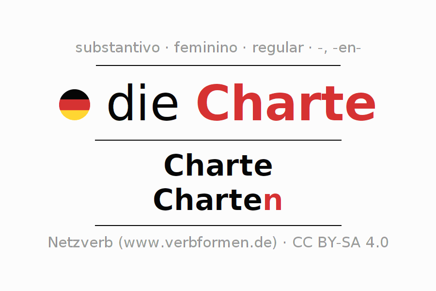 - Singular: die Charte, der Charte, der Charte, die Charte