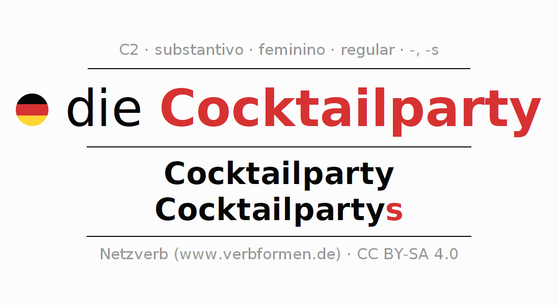 - Singular: die Cocktailparty, der Cocktailparty, der Cocktailparty, die Cocktailparty