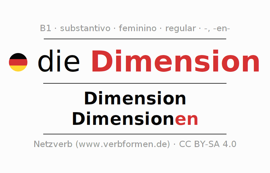 - Plural: die Dimensionen, der Dimensionen, den Dimensionen, die Dimensionen