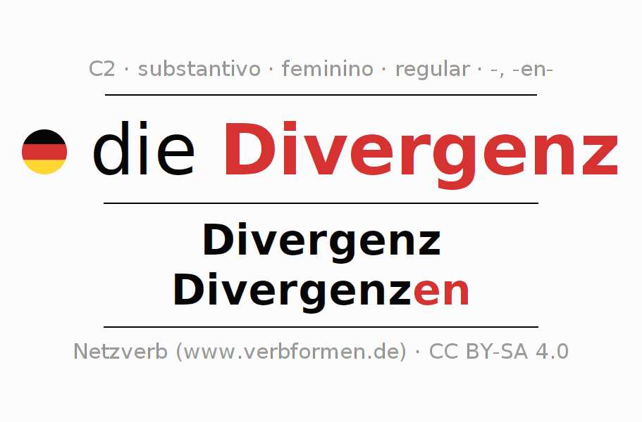 - Plural: die Divergenzen, der Divergenzen, den Divergenzen, die Divergenzen