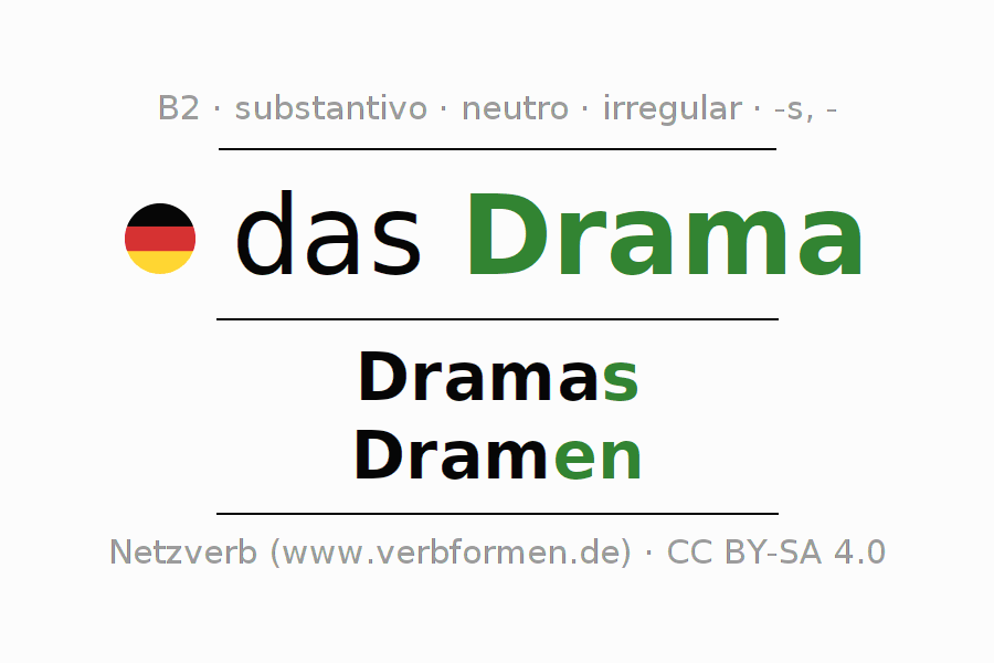 - Plural: die Dramen, der Dramen, den Dramen, die Dramen