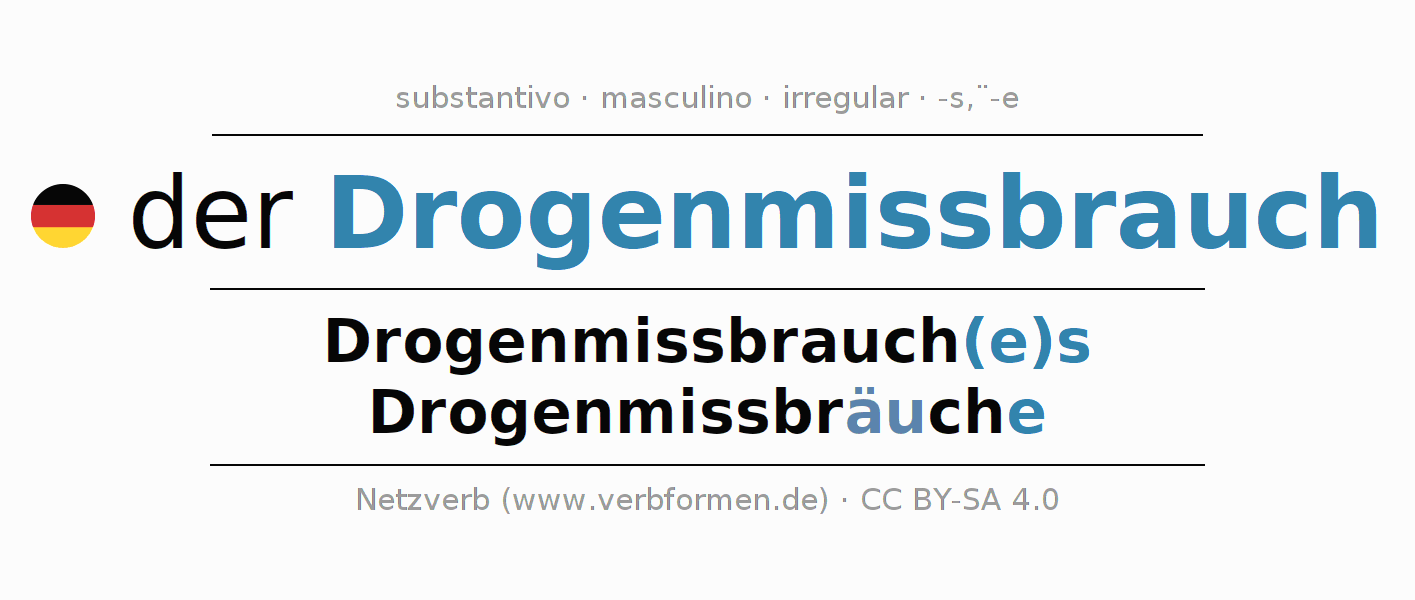 | Nom. | der Drogenmissbrauch | die Drogenmissbräuche |