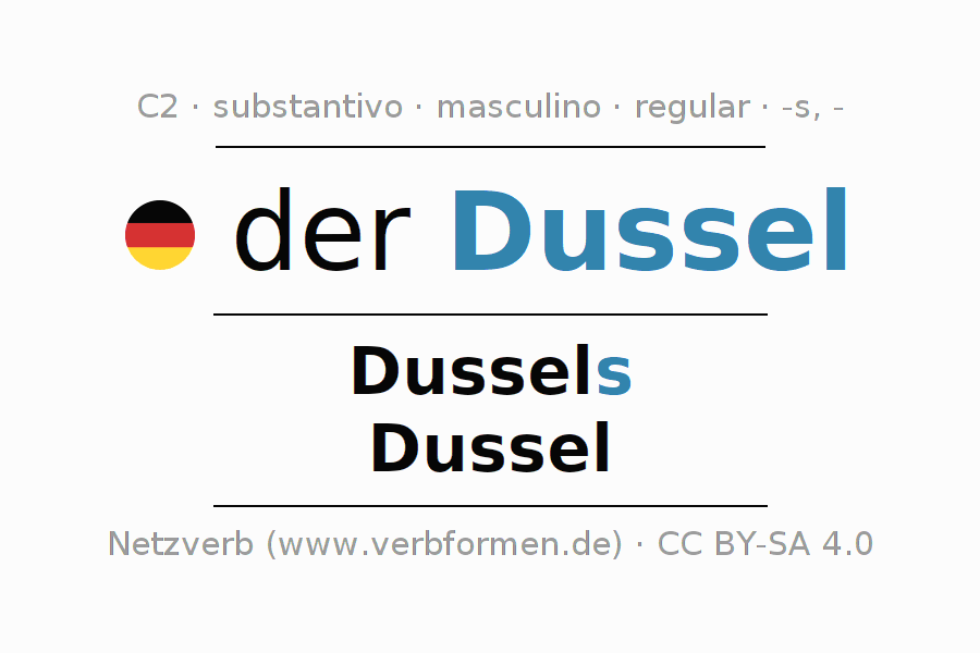 - Singular: der Dussel, des Dussels, dem Dussel, den Dussel