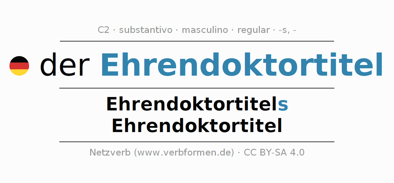 - Singular: der Ehrendoktortitel, des Ehrendoktortitels, dem Ehrendoktortitel, den Ehrendoktortitel