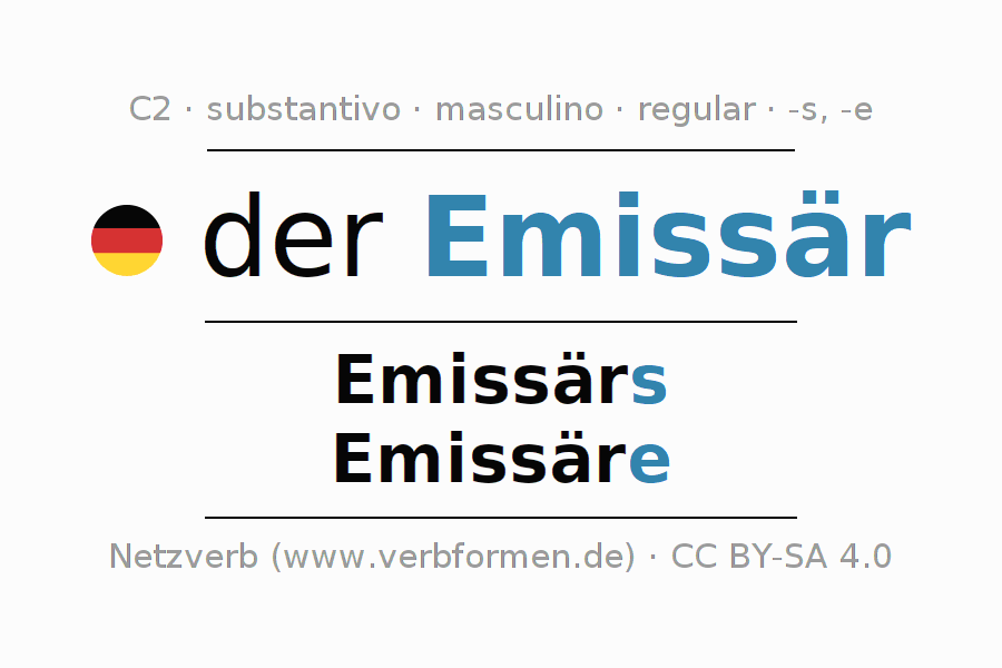 - Singular: der Emissär, des Emissärs, dem Emissär, den Emissär
