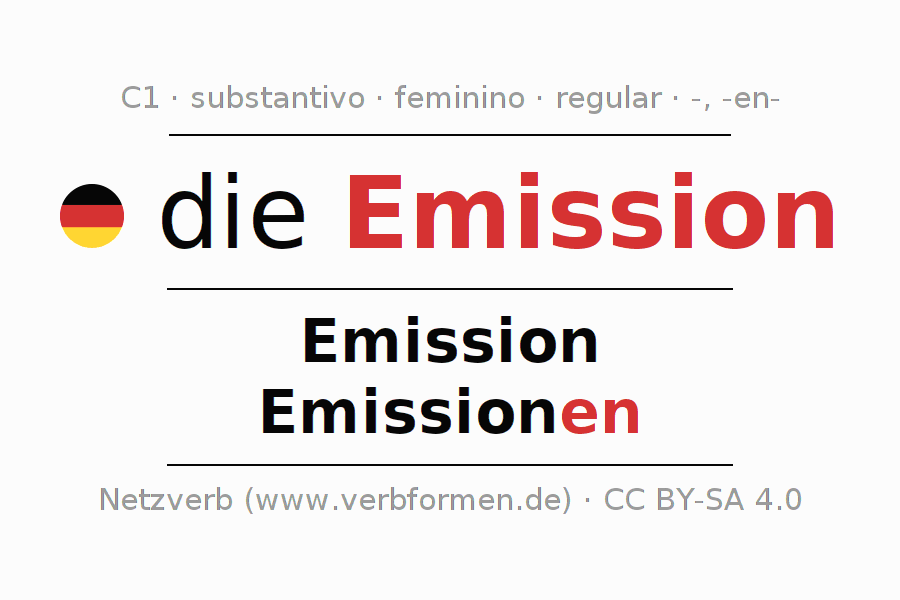 - Plural: die Emissionen, der Emissionen, den Emissionen, die Emissionen