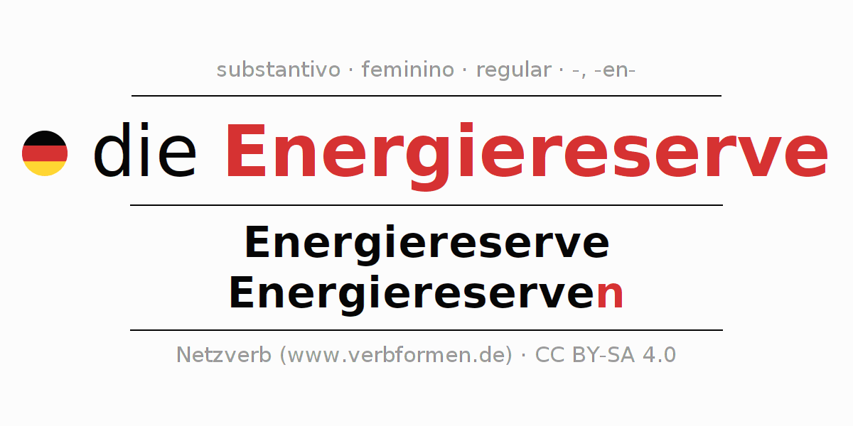 - Plural: die Energiereserven, der Energiereserven, den Energiereserven, die Energiereserven