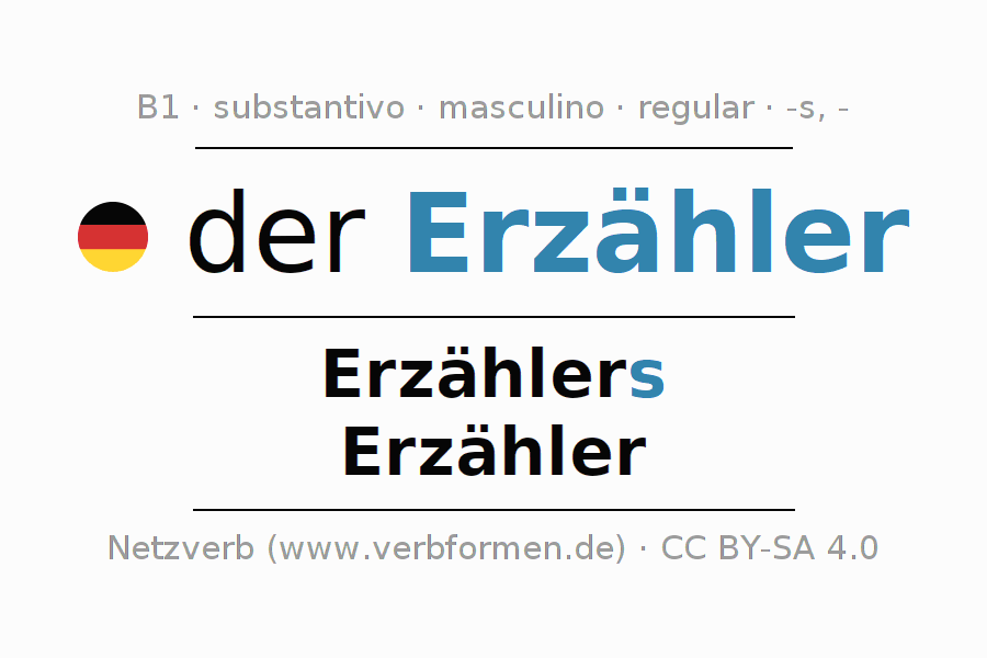 - Singular: der Erzähler, des Erzählers, dem Erzähler, den Erzähler